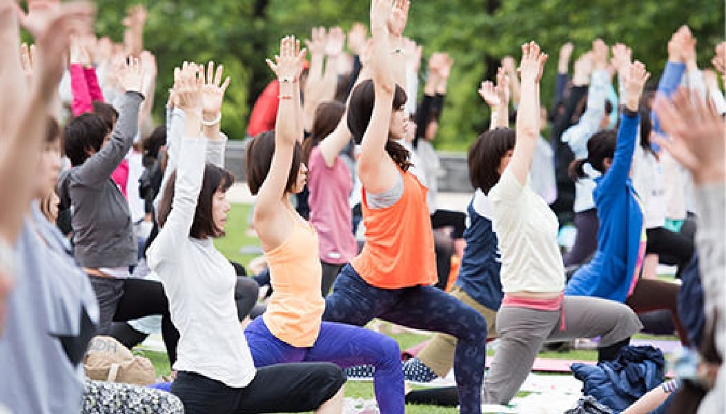 在綠意環繞的草坪廣場,舉辦感受太陽能量的「晨間瑜伽」,以及眺望東京塔和街燈的「夜間瑜伽」。