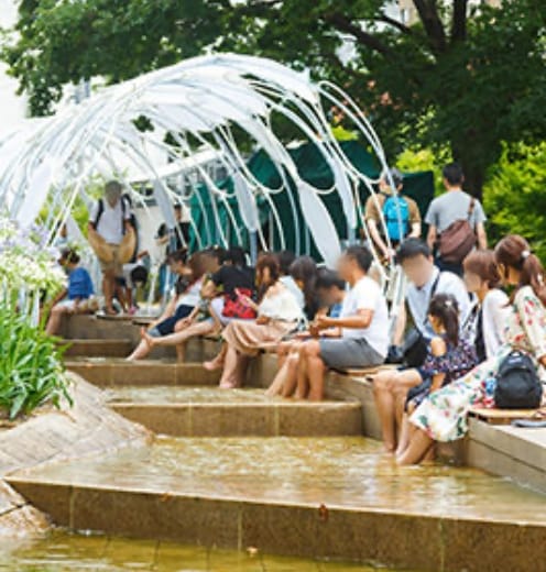 春天,可以觀賞以吉野櫻等100株櫻花綻放;夏日,可以把腳浸入小溪裡汲取片刻清涼;秋季,草坪廣場舉行電影活動;冬天則會有彩燈活動等。