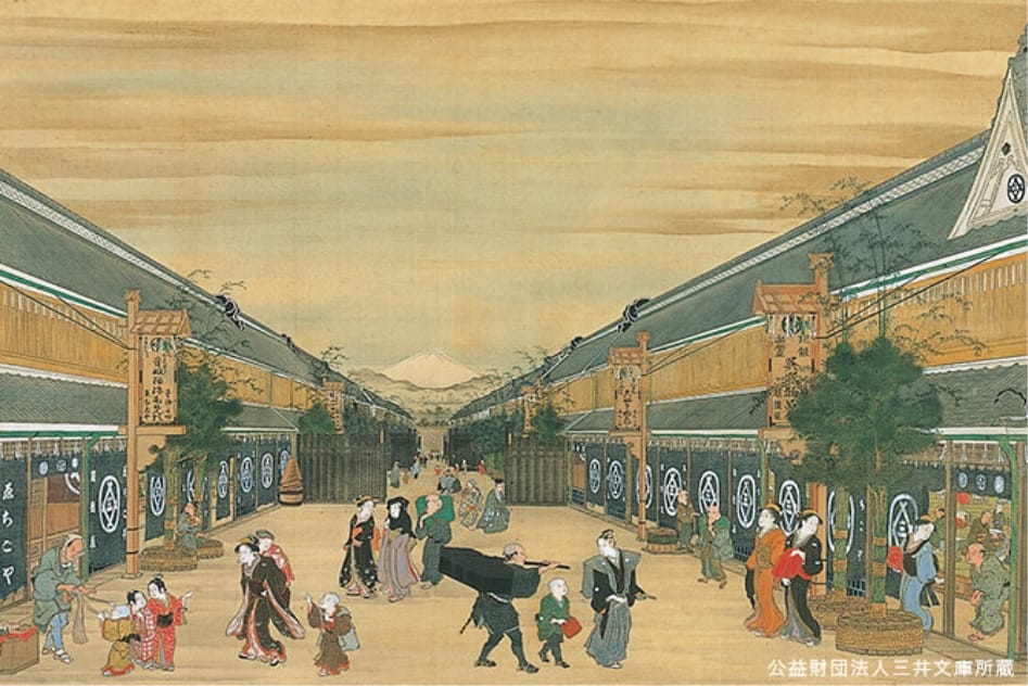三井家始祖 三井高利在江戶本町一丁目開設和服店「越後屋」
